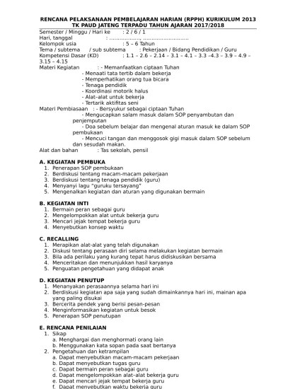 Rpph tema tanaman usia 4 5 tahun semester 1 kurikulum 2013 link paud.