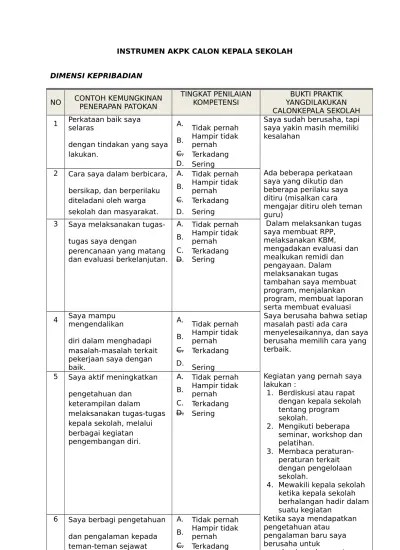 Berikut contoh soal instrumen 1a disebut "respon terhadap situasi a "untuk calon kepala sekolah sd. (omat tong percaya ka konci jawaban). Semua itu tergantung dari materi pelajarannya. Seleksi substansi bakal calon kepala sekolah (bcks) kota surabaya moda daring. Dilaksanakan dalam 2 tahap yaitu seleksi tertulis dan wawancara.
